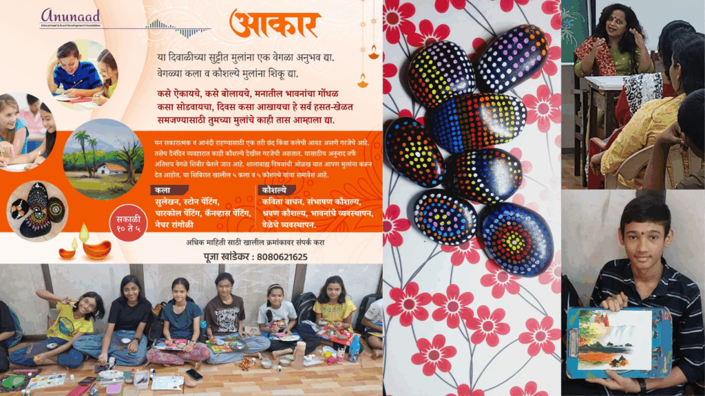 Our Activities of Year 2024-25 Recycled Notebooks distributed among the needy students in two schools Activity Type: Student support | 2024 | Resource Person: / Representative: Pooja Khandekar | Beneficiaries (Students) : Saloon Chair Destribution Activity Type: Community support | 2024 | Resource Person: / Representative: Pooja Khandekar | Beneficiaries: Barbers Lonavala School: Note books Distribution Activity Type: Student support | 2024 | Resource Person: / Representative: Pooja Khandekar | Beneficiaries: Students Diwali Activity : Gadchiroli Activity Type: Community support | 2024 | Resource Person: / Representative: Pooja Khandekar | Beneficiaries: Villagers Environmental Awareness: Kabnurkar School Activity Type: Environmental Awareness | 2024 | Resource Person: / Representative: Mr. Patwardhan | Beneficiaries: Students. Diwali Art n Skill Workshop Activity Type: Art & Skills | 2024 | Resource Person: / Representative: Pooja Khandekar | Beneficiaries: Students. Bunk Bed Handover Program Activity Type: Community Support | 2024 | Resource Person: / Representative: Pooja Khandekar | Beneficiaries: Hostel. Flour Mill Distribution Activity Type: Community Support | 2024 | Resource Person: / Representative: Pooja Khandekar | Beneficiaries: Villege.